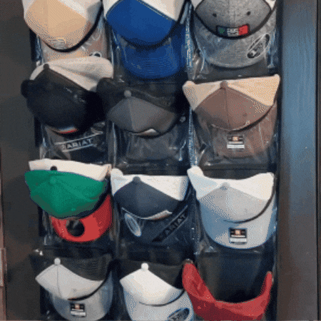 • Tiene clips o ganchos que sujetan firmemente cada gorra sin deformarla