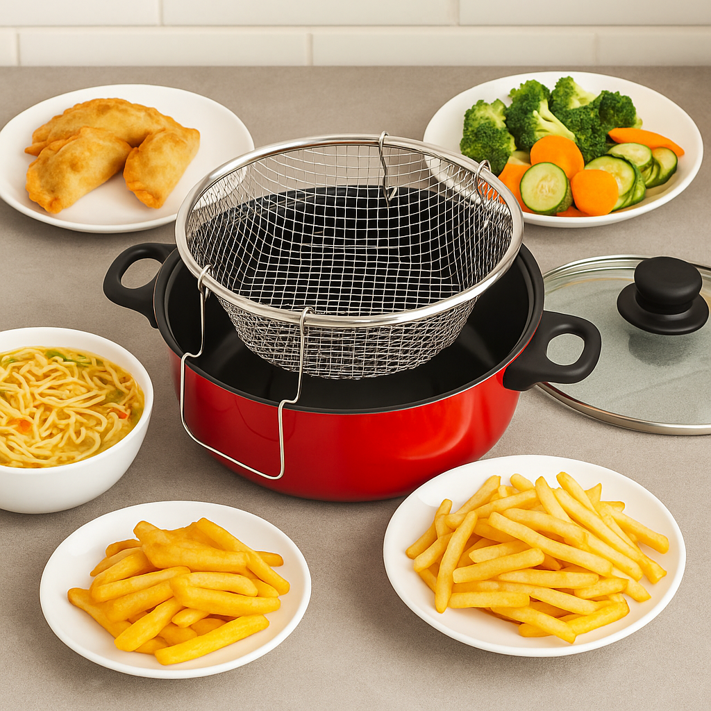 Gracias a su cesta metálica extraíble, puedes freír cualquier alimento sin preocuparte por salpicaduras ni desorden. ¡Sirve directo desde la olla!